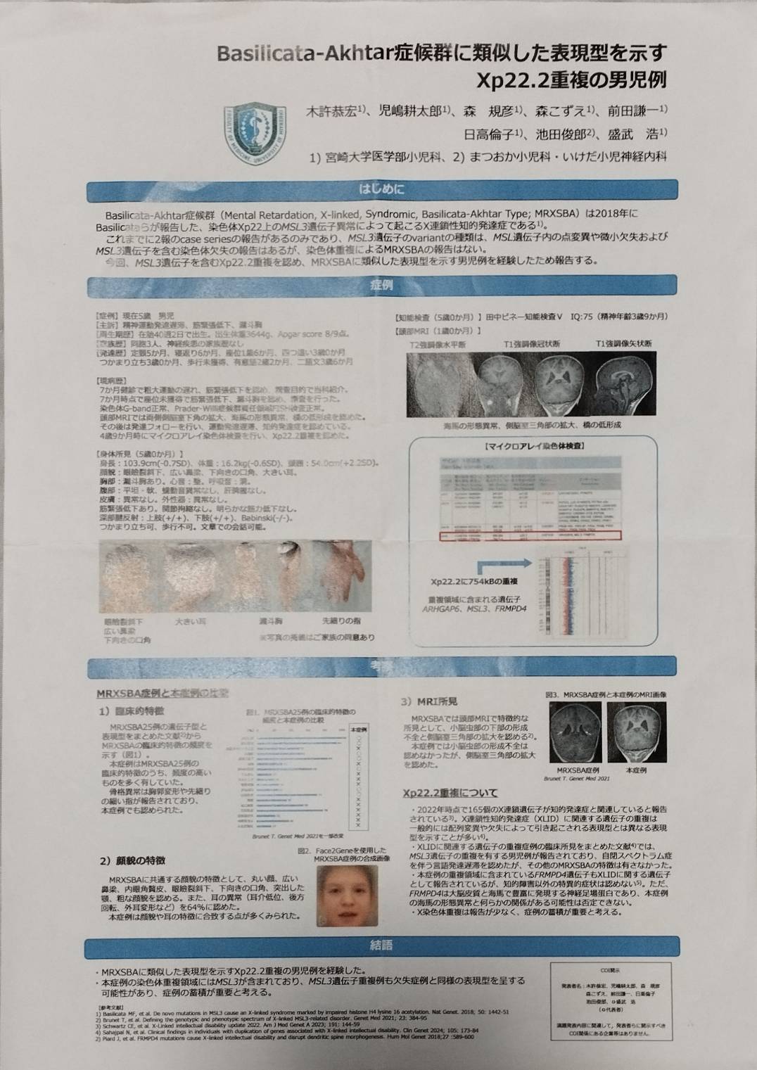 大学病院にて、マイクロアレイ染色体検査より
