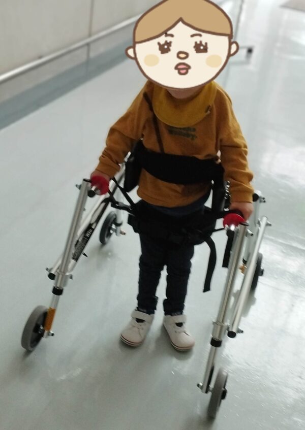 ただ、誰かが立たせてからの動作のみ。自分の力でその場に立つことはまだできず、練習中です。