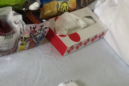 枕元には元気になったら食べる予定のお菓子やご飯のお供がたくさん並んでいました。 - 2015/6自己末梢血幹細胞移植